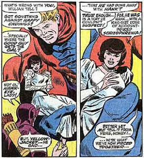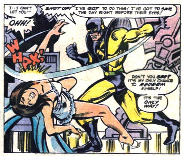 Now before I go into more story details, Jim Shooter explained that the above scene was supposed to be an accident. It was meant to be a gesture of dismissal that accidentally strikes Janet. But Bob Hall misinterpreted the act to show Hank losing his temper and lashing out at Janet.
