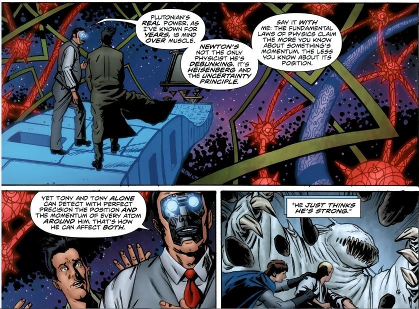 In anyway, the heroes thought that using a piece of the candle in a bullet could kill mean old Tony. Naturally however, they make an uneasy alliance with the demonic Orian to get Plutonian in sight. By the time the bullet is fired at the Plutonian; one of the heroes named Qubit redirects the bullet into their demonic ally. Whenever this was brought up to the technopath, it’s usually a form of criticism for missing their chance or to beat the Dr. Who knockoff down. Some people like Max Damage could certainly put up a fight but no one can kill him.