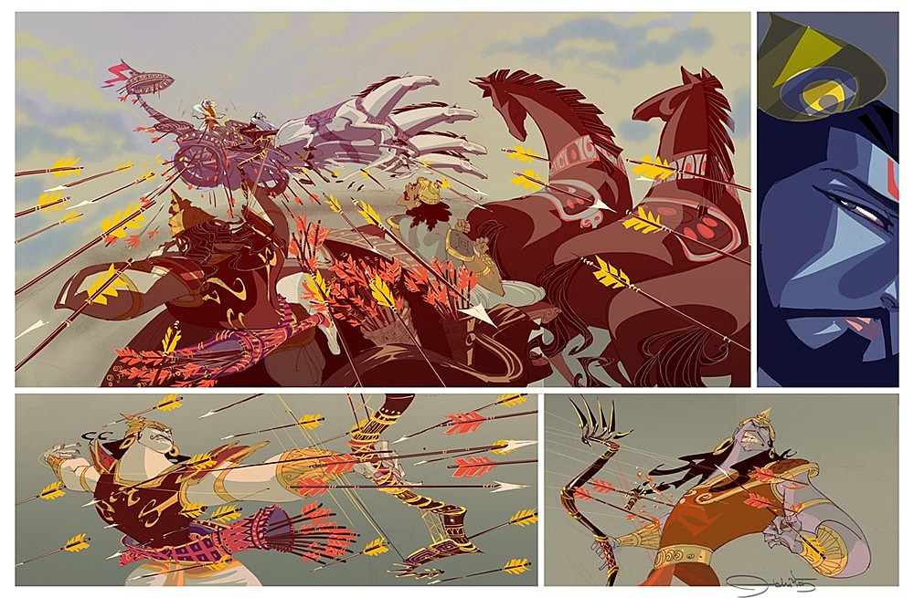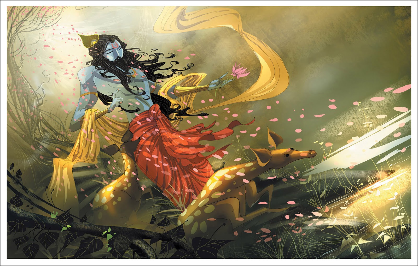 In Krishna, the titular character goes through his life from his birth to his death. With his uncle said to die by his nephew’s hand, Krishna was born away from his parents’ confines. During this time as a child his encounters that display his growth into a warrior. With the ability to see into the hearts of others and Krishna helps overcome their struggles. By the inevitable battle with his uncle, Krishna won but had to continue fighting and losing people he cared about. Despite this, Krishna believes he has lived a full life and is ready to pass on to the next stage in the reincarnation. Something that comes into fruition when he is struck by an arrow.