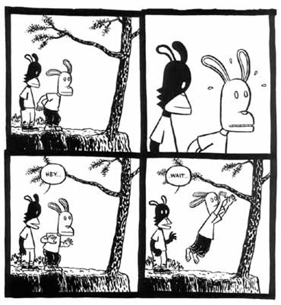 John Arne Sæterøy is a Norwegian cartoonist known for his minimalist style as much as his pen name. Jason’s stories almost always deal with anthropomorphic animals with simple faces that show little to practically no emotion. This is actually the art technique Neutrality; it’s where the character’s simple designs allow the audience to project themselves onto anyone in the story. Other examples include most manga characters as well as the use of stick figures.